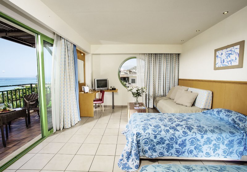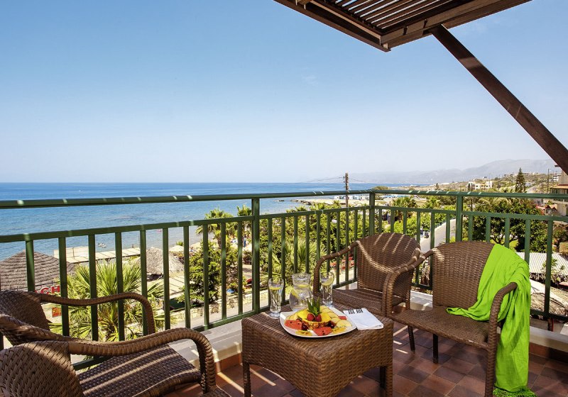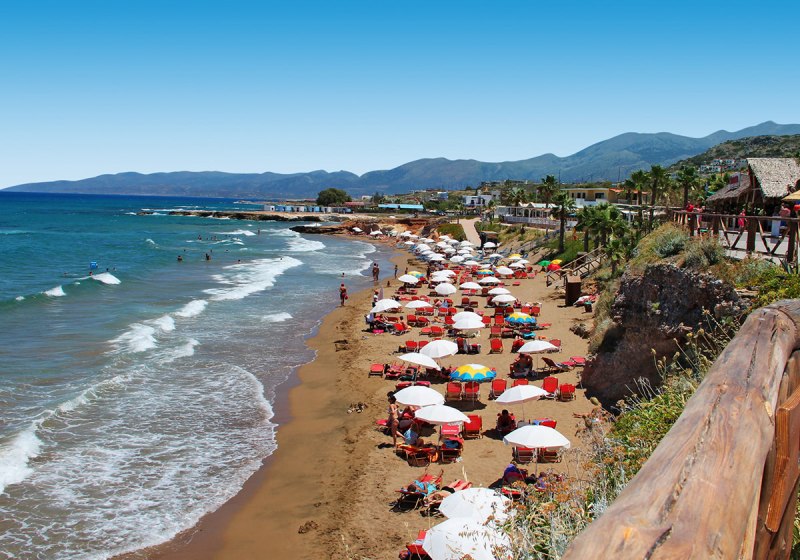 Ihr urlaubt am Ortsausgang von Hersonissos auf Kreta, der Sandstrand liegt nur durch eine Straße getrennt direkt gegenüber. Zum Flughafen Heraklion sind es etwa 25 Kilometer. Restaurants und Bars findet Ihr in der Umgebung, vieles ist schnell erreicht – vom nächsten Restaurant rund 50 Meter bis zur Disco in etwa 1.000 Metern.