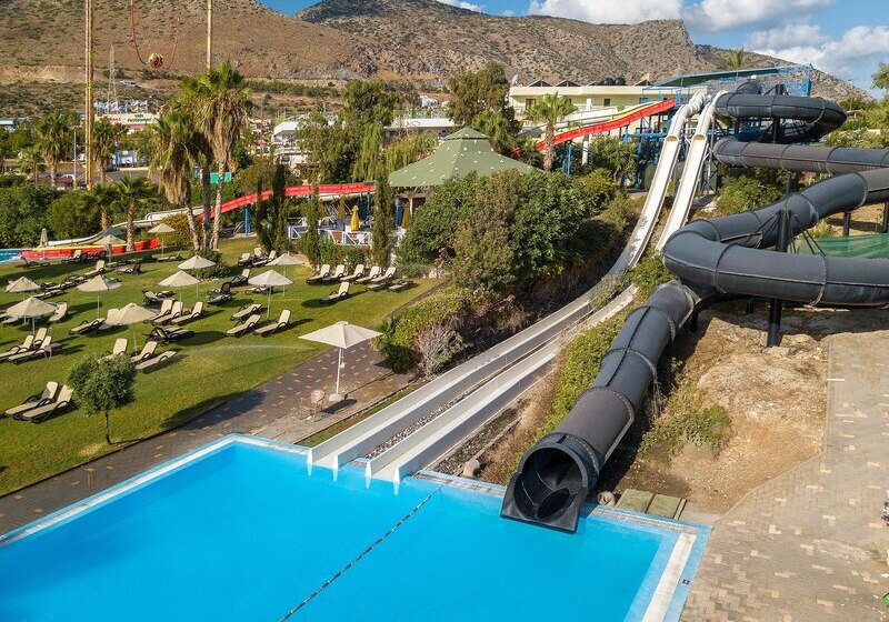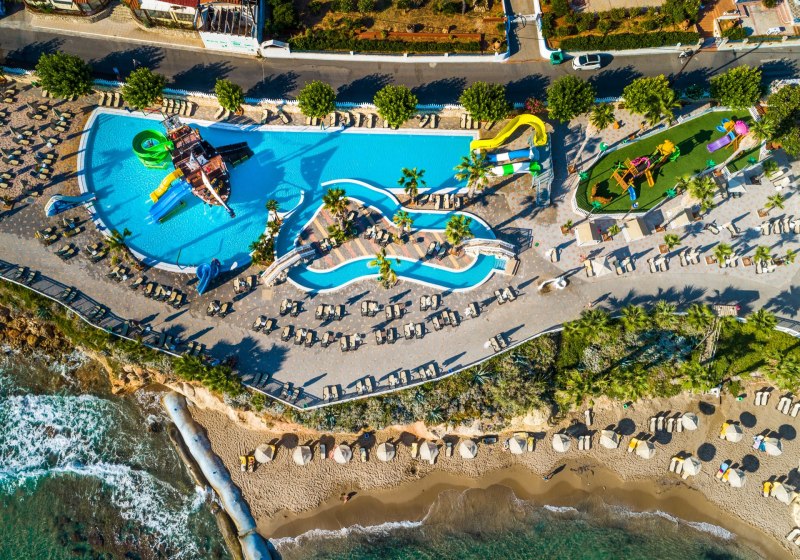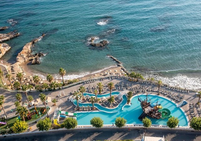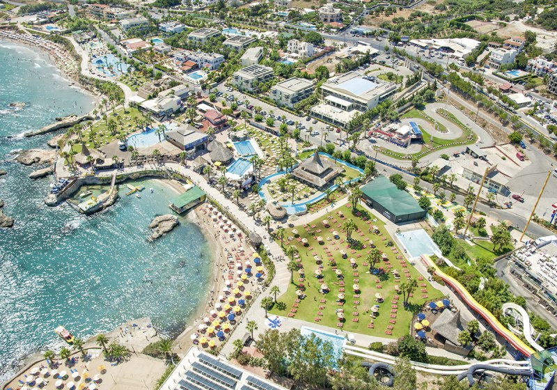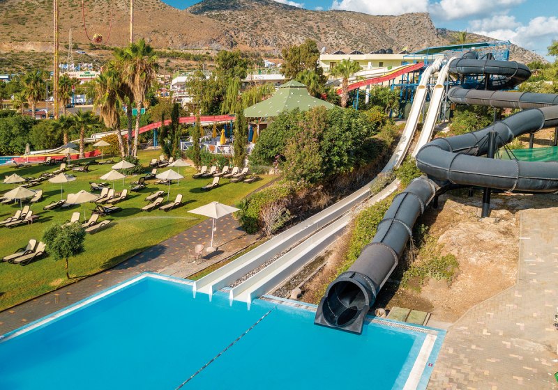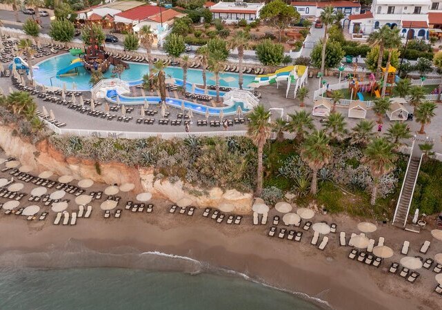 Im Star Beach Village & Waterpark wohnt Ihr direkt am Sandstrand von Hersonissos – nur eine Straße trennt Euch vom Meer. Die Stimmung ist lebendig und unkompliziert: weitläufige Gärten, Sonnenterrassen und eine große Poollandschaft geben Euch Raum für Badezeit, Familienmomente und lässige Tage zwischen Strand und Wasserpark. Wer Abwechslung sucht, taucht in den hoteleigenen Rhythmus aus Animation, Mini-Disco und Abendshows ein – oder zieht sich mit einem Drink an die Strandbar zurück.