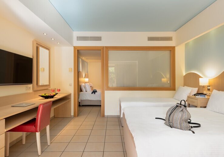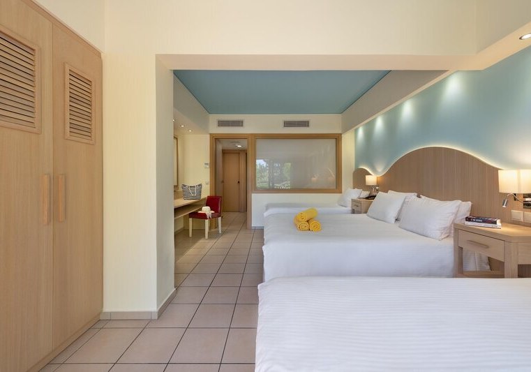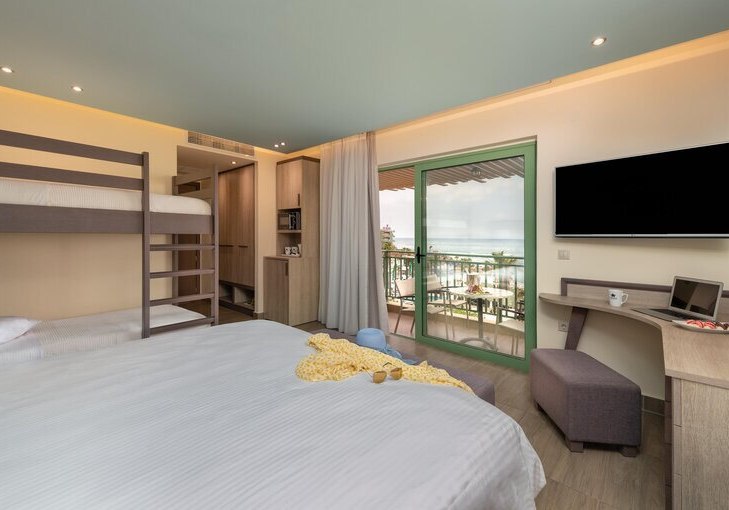 Für Familien stehen Familienzimmer mit separatem Schlafraum zur Verfügung. In den Suiten sorgen Bademäntel und Hausschuhe für zusätzlichen Komfort. Ausgewählte Kategorien bieten Meerblick; verschiedene Optionen wie Zustell- oder Kinderbett sind möglich. So wählt Ihr je nach Reiseplan vom kompakten Doppelzimmer bis zur Suite das passende Zuhause am Meer.