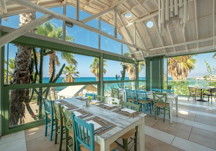 Kulinarisch habt Ihr Auswahl: Hauptrestaurant, kretische Taverne und ein asiatisches Restaurant liefern Abwechslung zwischen regionalen Akzenten und internationalen Favoriten. Bars begleiten den Tag: Helios Lobby Bar, Strandbars und eine Pool-/Snackbar versorgen Euch vom ersten Kaffee bis zum Sundowner am Meer.