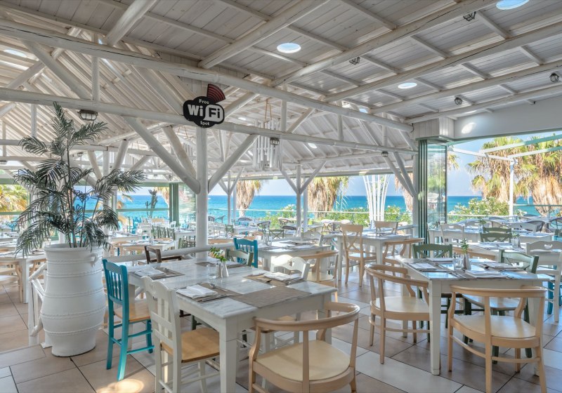 - Drei Küchen: Hauptrestaurant, kretische Taverne und asiatisches Restaurant vor Ort.