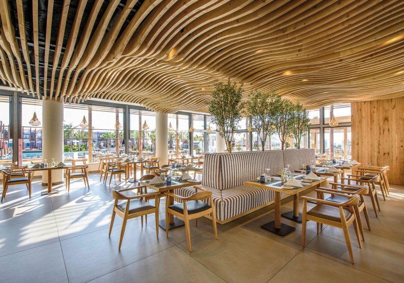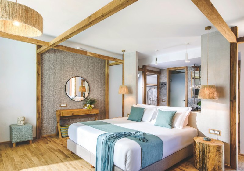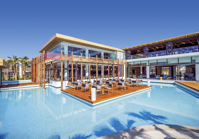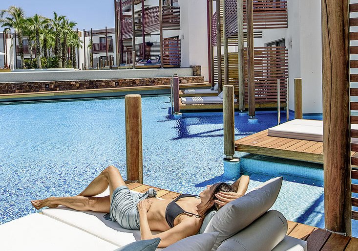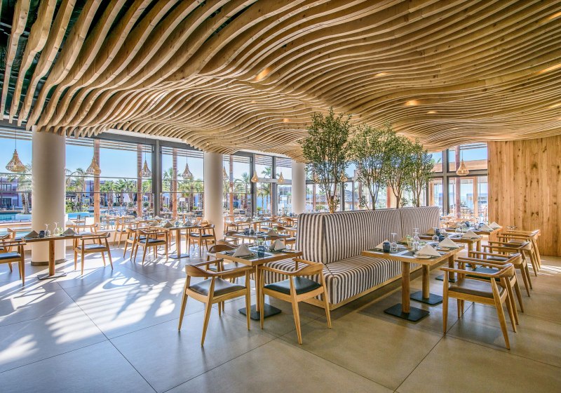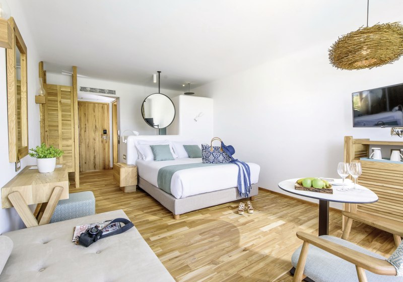 Stella Island richtet sich als Adults-only-Refugium ab 15 Jahren klar an Paare und Freundeskreise, die stilvolle Ruhe schätzen. Ihr wohnt in 225 Wohneinheiten auf zwei Etagen, umgeben von einem weitläufigen Lagunenpool mit geschwungenen Wasserläufen. Das Ambiente wirkt modern und klar, mit viel Wasser, Holz und hellen Flächen – ideal, um Tempo herauszunehmen und den Tag bewusst zu gestalten.