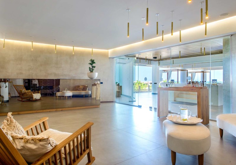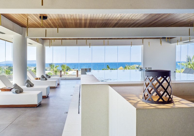 Zwischen Lobby, Lounge „Utopia“ und sonnigen Terrassen wechselt Ihr nahtlos vom Müßiggang am Wasser zu genussvollen Momenten in mehreren À-la-carte-Restaurants und Bars. Der hoteleigene Strandabschnitt liegt nur etwa 200 Meter entfernt, durch eine Straße getrennt. Mit Spa, Hallenbad und Fitnessraum bleibt der Rhythmus Eures Tages in Eurer Hand – entspannt oder aktiv, aber stets fokussiert auf Euch.