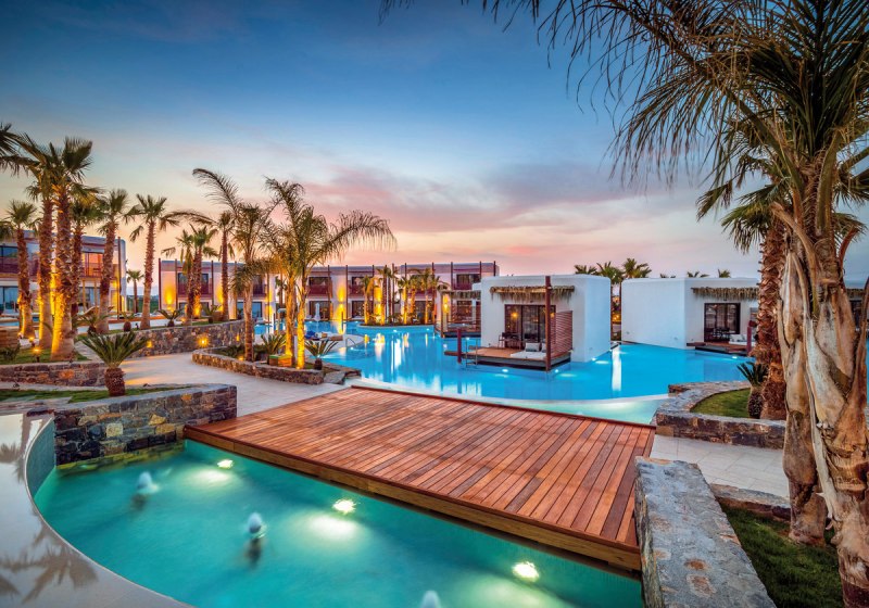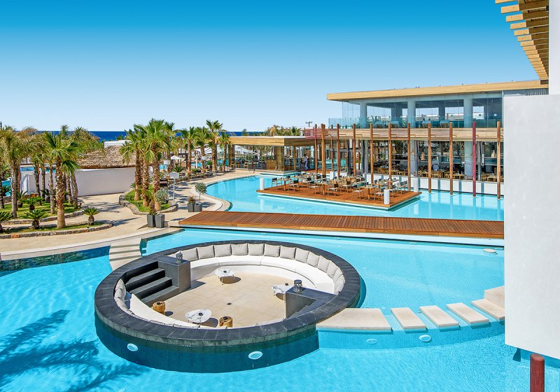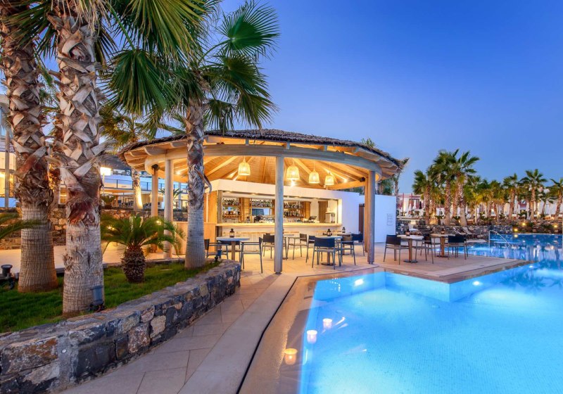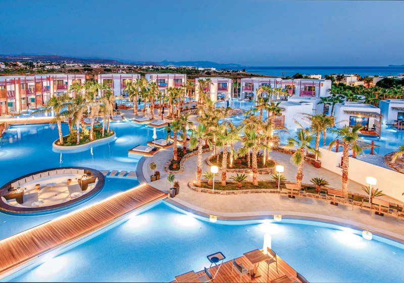 Mit fünf À-la-carte-Restaurants, Spa inklusive Hallenbad und einem breiten Sportangebot trefft Ihr eine fokussierte Wahl für erholsame Tage in den Ferien. Wer Abwechslung sucht, nutzt den nahegelegenen Wasserpark oder bummelt nach Analipsi und Chersonissos.