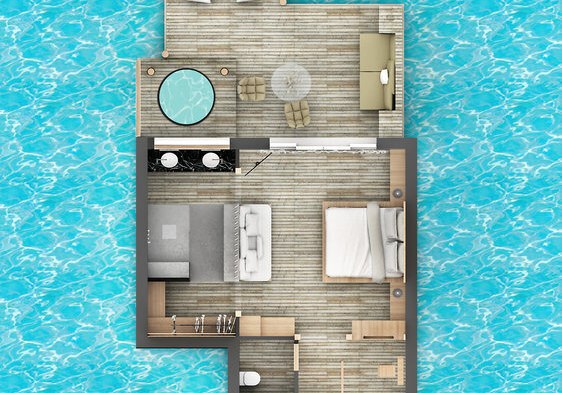 - Über dem Wasser: Overwater Bungalows setzen auf Nähe zum Lagunenband.