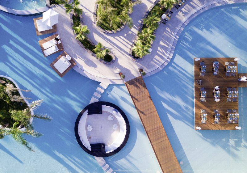 - Drei Bars: Lobbybar und zwei Poolbars für kurze Wege zum Drink.