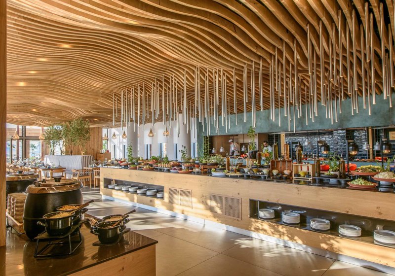 Kulinarisch habt Ihr die Wahl: ein Hauptrestaurant, fünf À-la-carte-Restaurants sowie drei Bars – bestehend aus Lobbybar und zwei Poolbars. Vom Frühstück bis zum Abendessen reicht das Spektrum, ergänzt durch Snacks und Live-Kochen. Vegetarische, glutenfreie und Diätgerichte sind verfügbar, ebenso spezielle Angebote und Couples-/Private Dining.