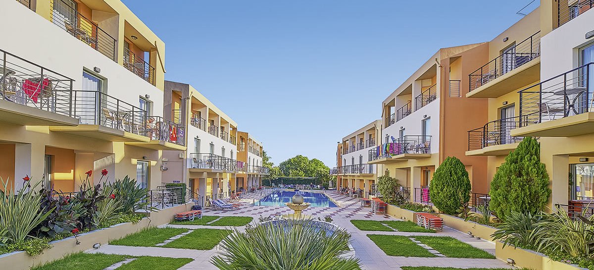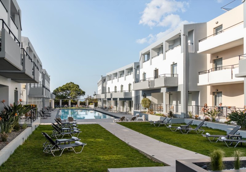 Im Sunrise Village Hotel wohnt Ihr in einer entspannten Anlage in Platanias auf Kreta, nur einen Spaziergang vom Sandstrand entfernt. Die Atmosphäre ist lässig, familienfreundlich und praxisnah: Studios, Appartements und Maisonetten geben Euch Raum, während Ihr dank WLAN in der gesamten Anlage verbunden bleibt. Der große Außenpool mit integriertem Kinderbecken bildet den klaren Mittelpunkt Eurer Tage.