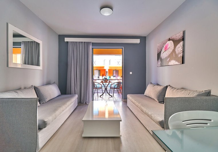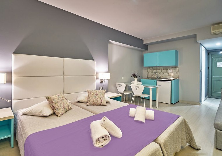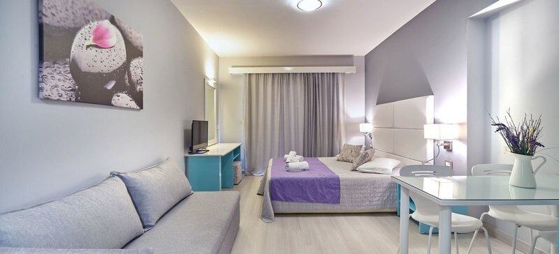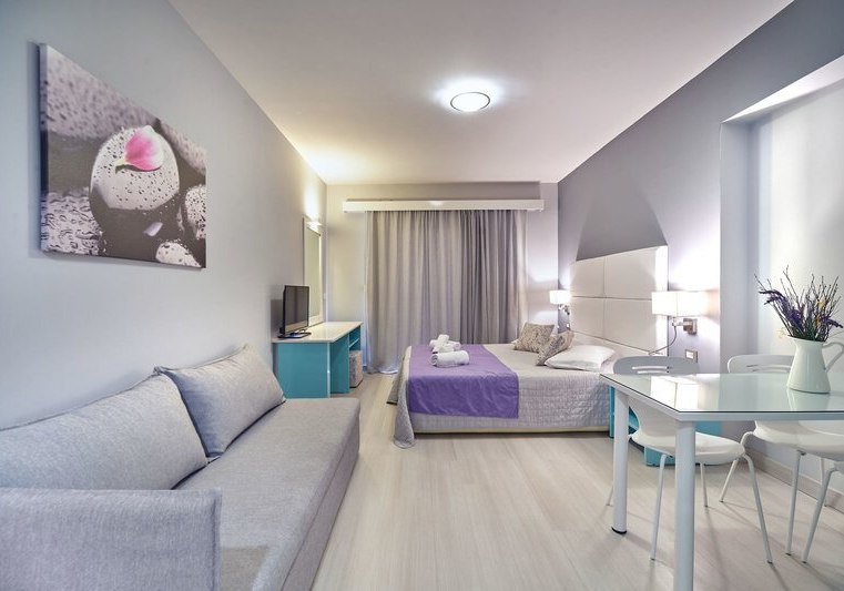 Ihr wählt zwischen Studios, Appartements mit separatem Schlafzimmer und Maisonetten über zwei Ebenen. Alle Wohneinheiten sind mit Badewanne und WC, Föhn, individuell regulierbarer Klimaanlage, Safe, WLAN und Telefon ausgestattet. Eine Kitchenette mit Minikühlschrank sowie Sat-TV gehören ebenso dazu. Balkon oder Terrasse öffnen den Blick in die Anlage.