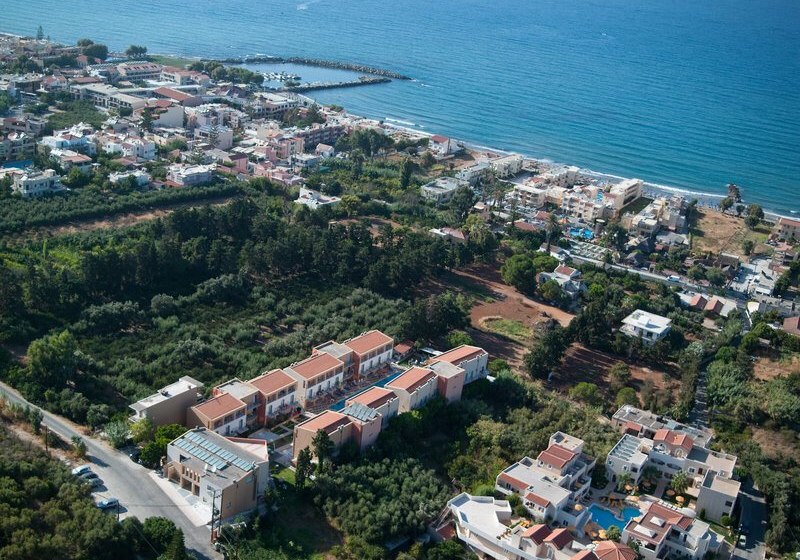 Ihr wohnt in Platanias auf Kreta, etwa 550 Meter vom Sandstrand entfernt. Der Weg führt durch das lebhafte Resort, das für kurze Wege und mediterranes Alltagsflair steht. Vom Flughafen Chania trennen Euch rund 25 Kilometer, was An- und Abreise angenehm planbar macht. Diese Lage verbindet Strandnähe mit der Bequemlichkeit eines Ortes, in dem Ihr Einkäufe, Snacks und abendliche Abwechslung leicht erreicht. Dank der Position abseits der ersten Strandlinie genießt Ihr ein ruhigeres Setting, ohne auf Wasser, Sand und Promenade zu verzichten. Für Ausflüge über den Tag hinaus bietet sich die Region Chania an, deren Küste und Orte unkompliziert erreichbar sind – ideal, wenn Ihr Badezeiten und kleine Entdeckungstouren kombinieren wollt.