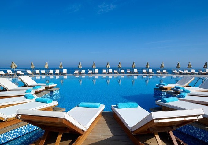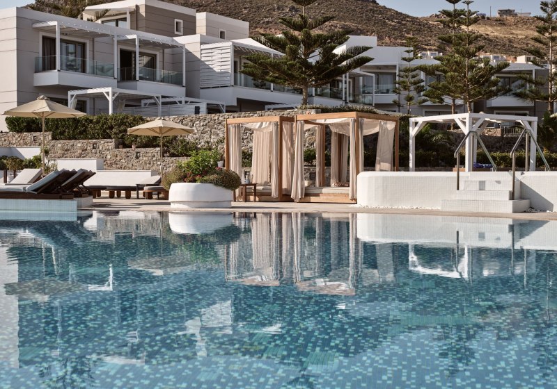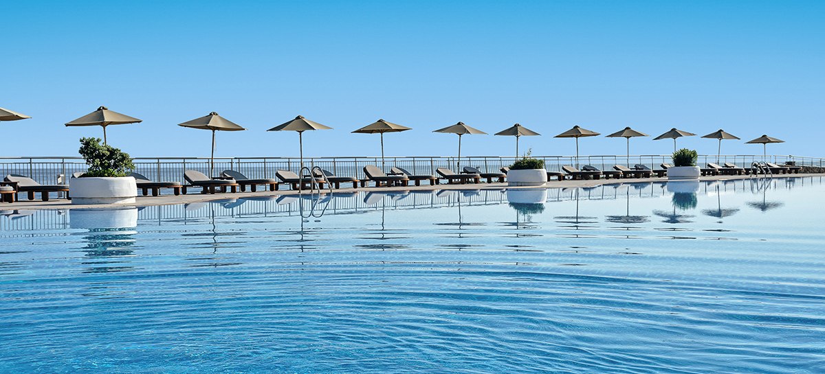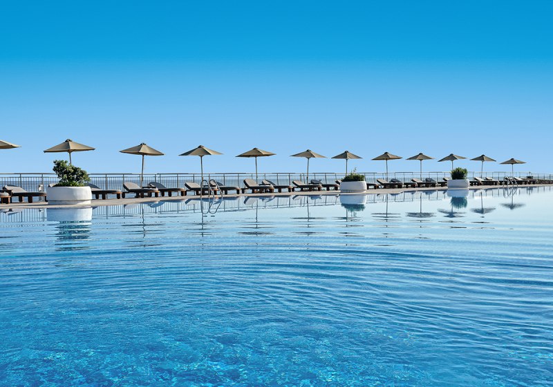 Am Strand warten Liegestühle, Sonnenschirme und Gazebos, dazu Umkleiden und The Beach Bar. Poollandschaften mit Außen- und Hallenbad, Kinderpool und ein Adults-only-Süßwasserpool verteilen die Erholung. Gepflegte Gärten und Terrassen geben dem Ganzen eine ruhige, klare Anmutung mit viel Außenraum.