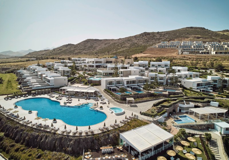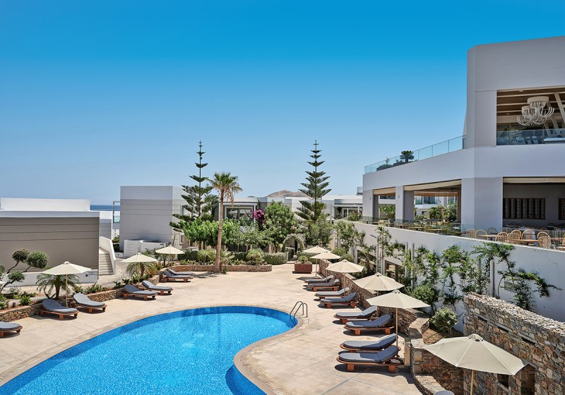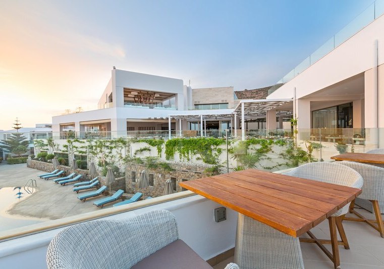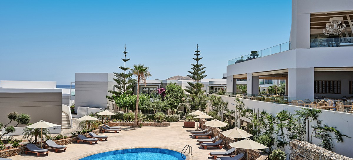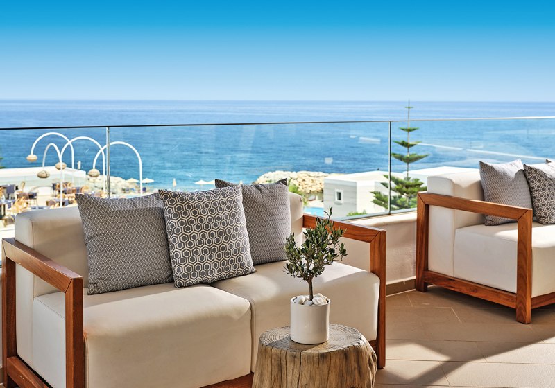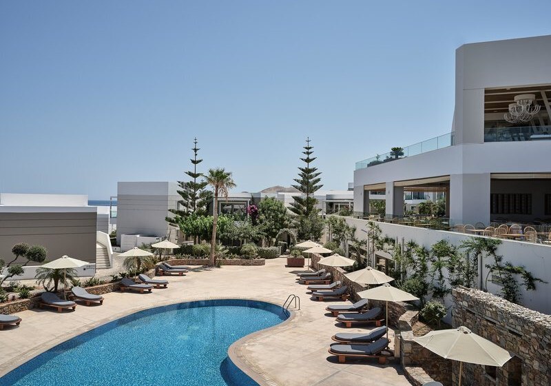Willkommen im The Royal Blue, Eurem Rückzugsort an Kretas Nordküste. Direkt an einer hoteleigenen Bucht mit künstlich angelegtem Sand-/Kiesstrand spürt Ihr mediterranes Lebensgefühl mit viel Raum. Die weitläufige Anlage verbindet Ruhebereiche und lebendige Zonen, darunter ein Adults-only-Süßwasserpool – ideal, um Tempo und Fokus selbst zu bestimmen.