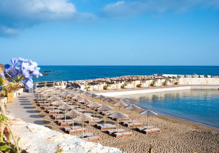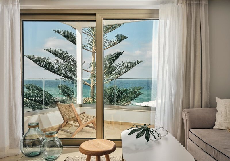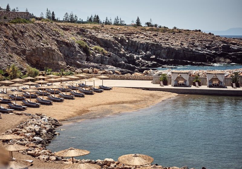 Ihr wohnt direkt an einer hoteleigenen Bucht bei Panormo – geschützt, überschaubar und mit kurzer Distanz zu täglicher Erholung am Wasser. Eine Bushaltestelle liegt etwa 300 Meter entfernt, wodurch Ihr flexibel bleibt. Rethymnon erreicht Ihr nach rund 18 Kilometern, der Flughafen Heraklion liegt ungefähr 58 Kilometer entfernt.