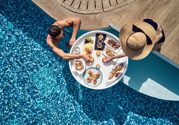 Familien finden in Suiten mit separatem Schlafzimmer Privatsphäre. Suiten und Villen liegen teils seafront, einige Kategorien bieten Sharing-Pools oder private Pools. So entscheidet Ihr zwischen Nähe zum Wasser, Rückzug am eigenen Becken oder klassischem Balkonblick – jeweils mit klarer, moderner Linie.