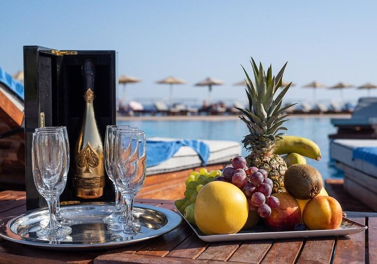 - Eigene Bucht: Strandservice mit Liegen, Schirmen und Pavillons inklusive.