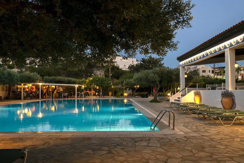 Villea Village ist ein Apartmenthotel mit 60 Einheiten, ruhig und autofrei gelegen, 100 Meter vom Sand-/Steinstrand auf Kreta. Die Anlage wirkt entspannt und übersichtlich: ein Süßwasser-Außenpool mit Sonnenterrasse, viel Grün im Garten und kurze Wege zu Restaurant, Café und Poolbar. Familien profitieren von Apartments mit Kitchenette, getrennten Schlafzimmern und Schlafsofa sowie Kindermenüs. Wer unabhängige Tage plant, nutzt die Kitchenette oder den Grillplatz, abends locken Bar/Lounge und die Terrassenplätze.