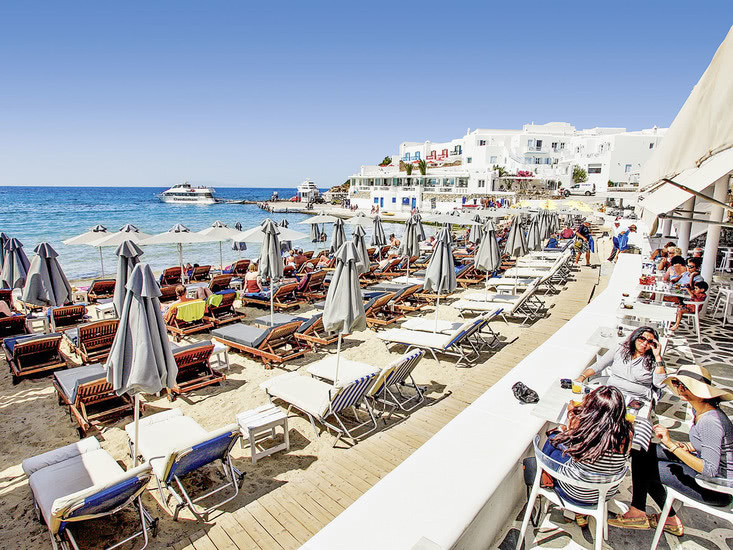 Im Haus erwartet Euch ein Animationsprogramm mit angenehmem Grundton. Abends profitiert Ihr von der Lage in Platy Yialos: Bars und Strandtavernen schaffen lebendige, aber nicht aufdringliche Stimmung am Wasser. Wer mehr Auswahl sucht, findet in Mykonos-Stadt Geschäfte und Souvenirshops.