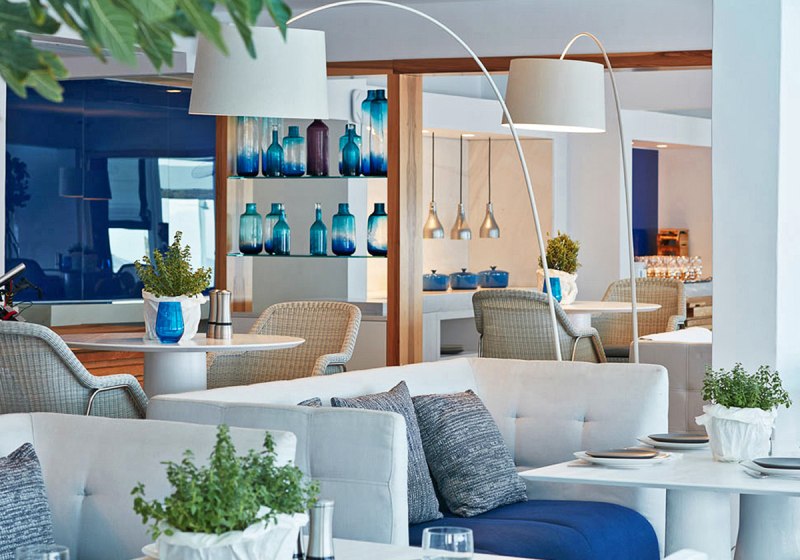 Kulinarisch führt Euch Myconian Ambassador Relais & Chateaux Hotel vom reichhaltigen Frühstücksbuffet in ein Trio aus Haupt-, À-la-carte- und Gourmetrestaurant. Die Küchenlinien sind klar getrennt, das Servicebild bleibt fokussiert. Ergänzend versorgt Euch die Bar mit Klassikern und Signature-Drinks, während die Pool-/Snackbar unkomplizierte Pausen erlaubt.