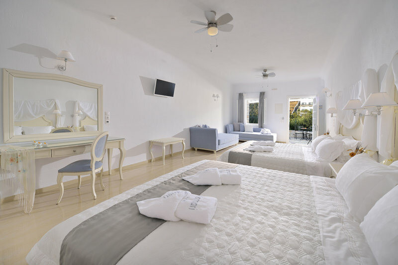 Für zurückhaltende Abwechslung sorgen der Spielplatz und der Arcade-/Gaming-Raum. Damit bleiben Regentage oder kurze Pausen ebenso strukturiert wie der Abend nach dem Strand. Organisierte Shows oder feste Entertainment-Programme sind nicht ausgewiesen; die Ausrichtung bleibt locker und frei gestaltbar. In Kombination mit der Nähe zur Stadt Mykonos entsteht ein Mix, bei dem Ihr selbst entscheidet, wie lebhaft der Tag klingen soll.
