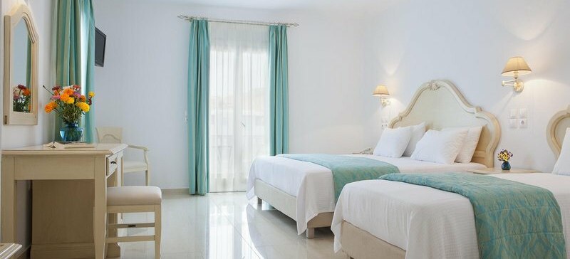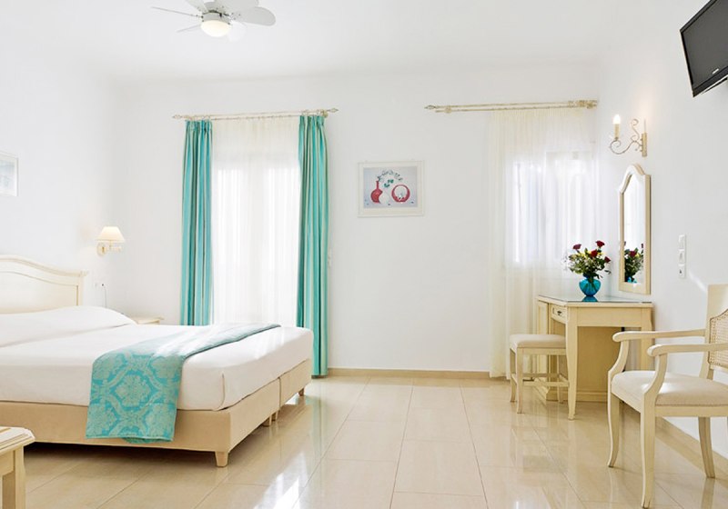Im Kamari Hotel wohnt Ihr in einem entspannten Strandhotel auf Mykonos, das Klarheit und mediterrane Leichtigkeit verbindet. Der Alltag rückt schnell in den Hintergrund: Ihr startet den Tag auf dem Balkon oder der Terrasse, gleitet danach an den Außenpool und wechselt später an den nahen Sandstrand. Die Wege sind kurz, die Abläufe unkompliziert, die Atmosphäre unaufgeregt. Familien freuen sich über das Kinderbecken, Paare über ruhige Ecken im Garten und alle über kurze Verbindungen in Stadt und zum Flughafen.