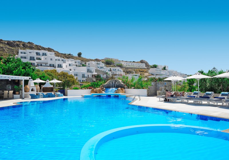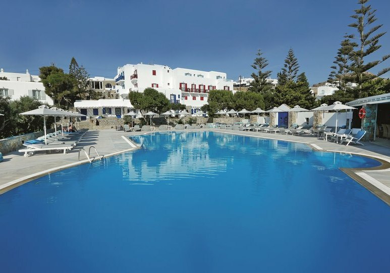 Ihr wohnt auf Mykonos mit nur etwa 200 Metern bis zum Sandstrand – ein kurzer Spaziergang, der den Pooltag spontan ins Meeresbad verlängert. In die Stadt Mykonos sind es rund 4 Kilometer. Für Ausflüge, Shopping und Abendstimmung bleibt Ihr damit nah am Geschehen, ohne auf die ruhigere Strandlage zu verzichten. Die Anreise ist unkompliziert: Der Flughafen Mykonos liegt ungefähr 6 Kilometer entfernt. Direkt vor der Tür, etwa 5 Meter vom Hotel, bringt Euch die Bushaltestelle flexibel zu weiteren Inselzielen. So gestaltet Ihr Euren Tag frei – morgens am Pool, mittags an den Strand, abends in die Stadt. Liegen und Schirme stehen am Strand gegen Gebühr bereit; am Pool nutzt Ihr beides kostenlos. Das Zusammenspiel aus kurzer Stranddistanz, direkter Busanbindung und guter Erreichbarkeit vom Flughafen verschafft Euch eine klare, alltagsfreundliche Struktur. Ihr entscheidet spontan, ob Ihr die Ruhe bewahrt oder Euch in das lebendige Mykonos-Flair aufmacht.