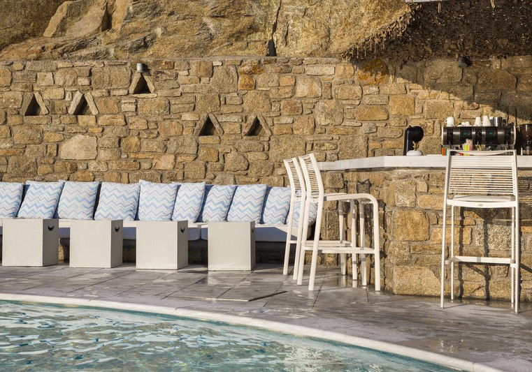 Für Familien bietet der Babysitterservice auf Anfrage eine praktische Entlastung für kurze Auszeiten. Weil Mykonos-Stadt nur wenige Gehminuten entfernt liegt, gelingen spontane Abstecher, ohne den Rahmen des Hauses zu verlassen. So entsteht ein leises, selbstbestimmtes Tempo: tagsüber am Strand oder am Pool, später ein Drink, ein kurzes Spiel mit den Kindern, dann der Spaziergang ins Zentrum.