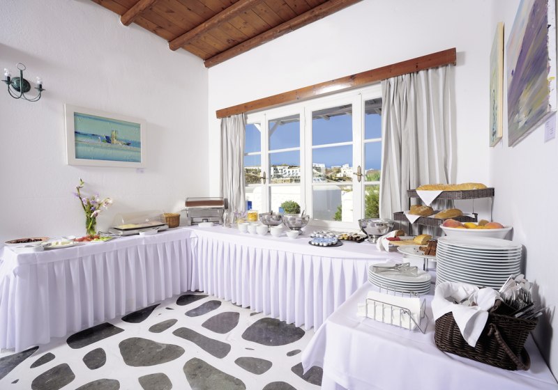 Im Mykonos Beach Hotel verläuft Unterhaltung bewusst gelassen. Ihr greift zur Lektüre in der Bibliothek, verabredet Euch im Café oder wechselt zur Bar. Wer das Wasser im Blick behalten will, bleibt an der Poolbar und nutzt die Terrasse als Treffpunkt zwischen Nachmittag und Abend. Ein TV-Raum ergänzt die ruhigen Gemeinschaftsbereiche, ohne den Tag zu verzetteln. Highlight: Zurückhaltendes Programm mit Bibliothek, Café und Bar für entspannte Stunden.