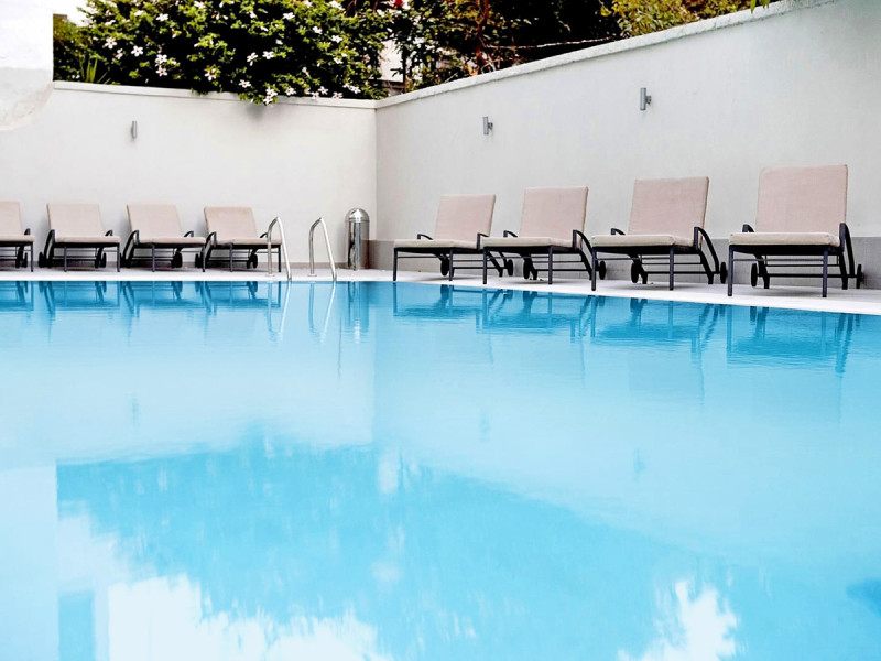 Für ruhige Auszeiten bleibt Ihr einfach vor Ort: Der Außenpool mit Liegestühlen und bereitgestellten Badetüchern ist Euer entspannter Rückzugsort zwischen Stadtspaziergang und Strandbesuch. Auf der Terrasse genießt Ihr eine Pause, bevor es wieder in die Gassen von Rhodos-Stadt geht.