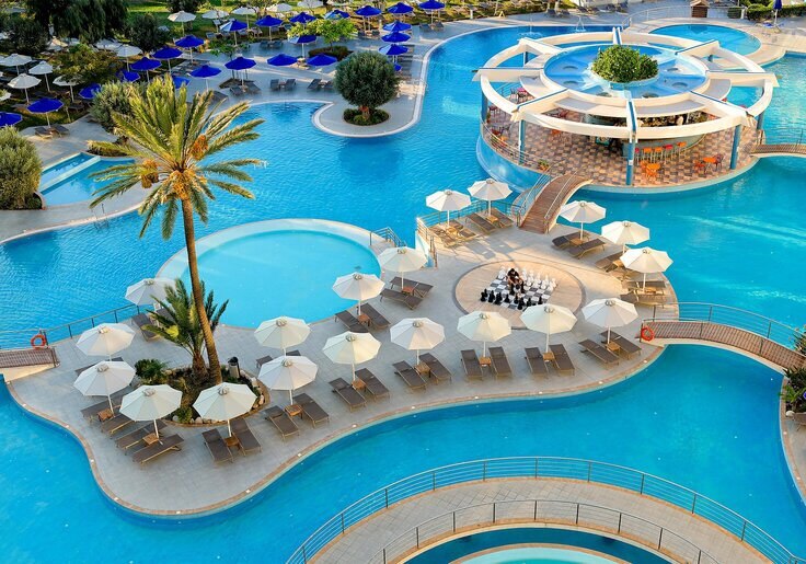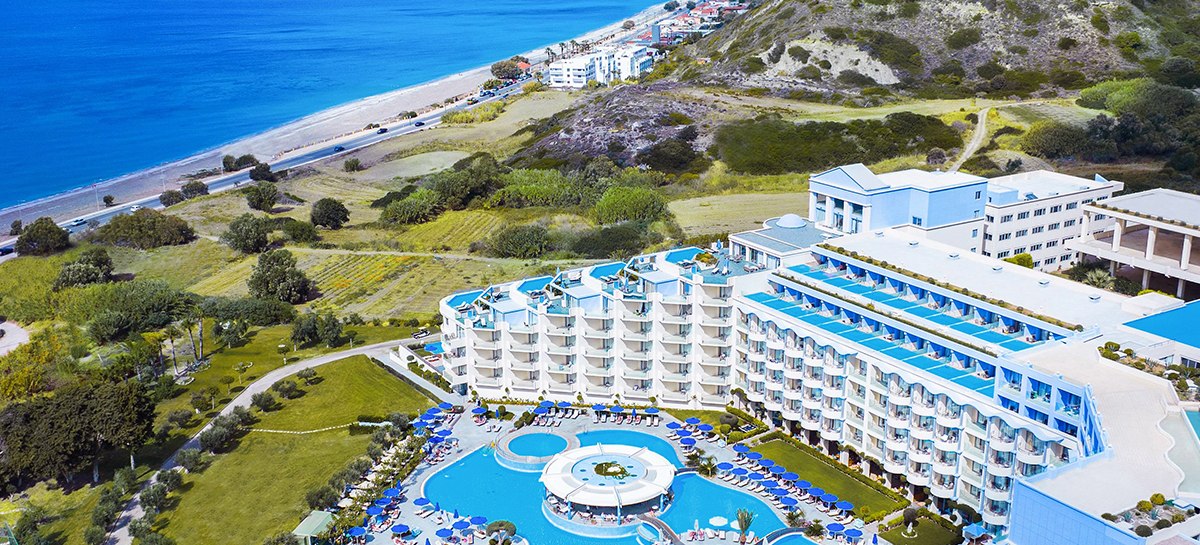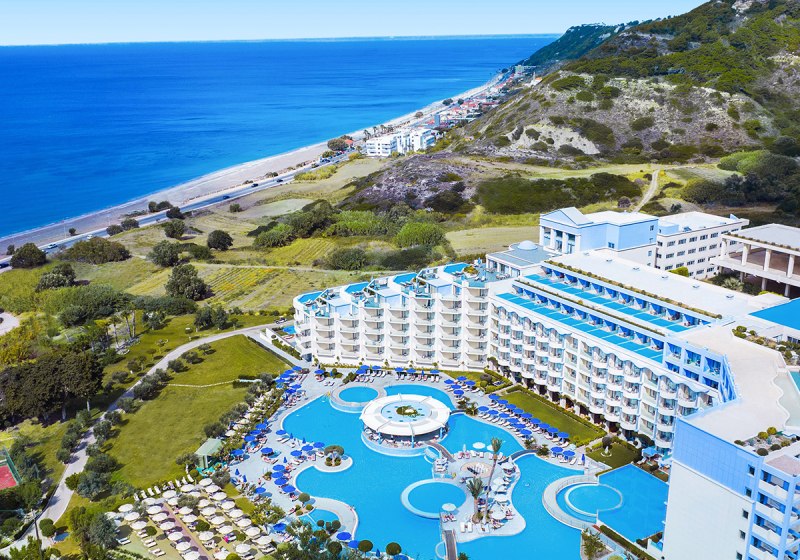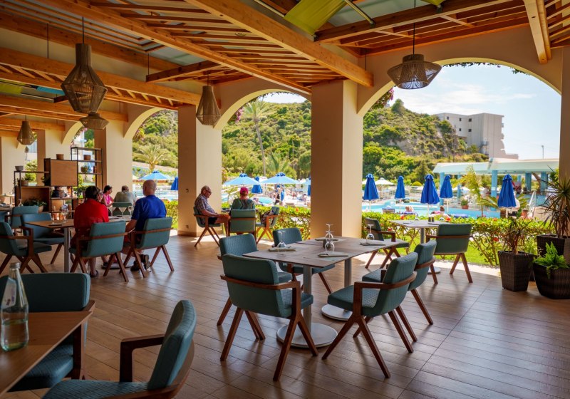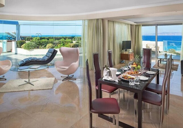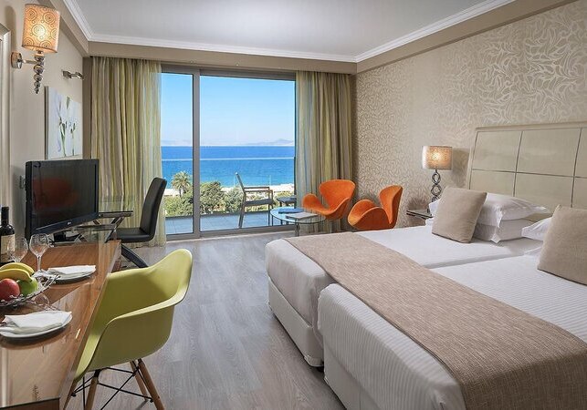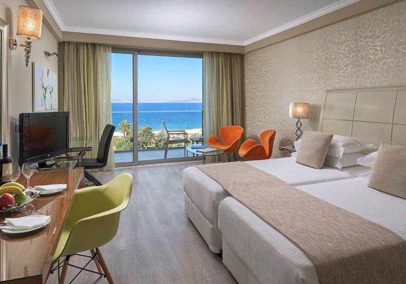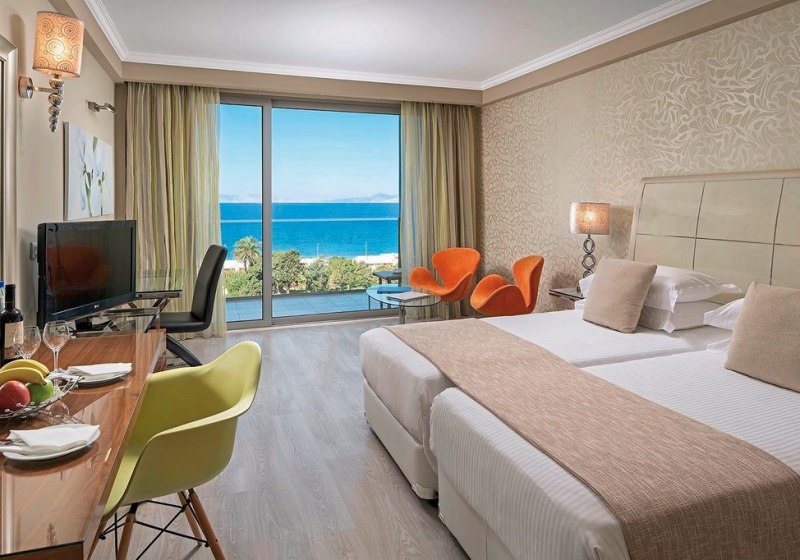 Die Lage bei Ixia bringt Euch schnell zum öffentlichen Kiesstrand, ins Zentrum und nach Rhodos-Stadt. Drinnen erwartet Euch eine umfangreiche Infrastruktur von der 24-Stunden-Rezeption über Geschäfte bis zu Konferenzräumen. Wer Privatsphäre schätzt, wählt Zimmer mit Privatpool; wer Vielfalt liebt, probiert mehrere À-la-carte-Restaurants und das Buffet im Archipelagos.