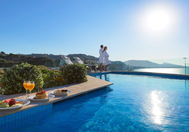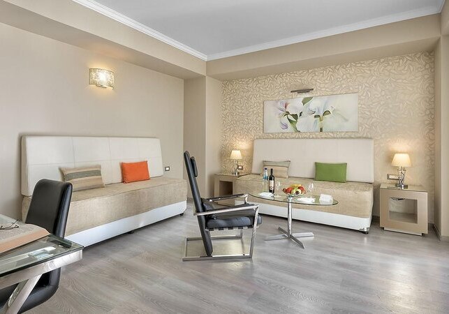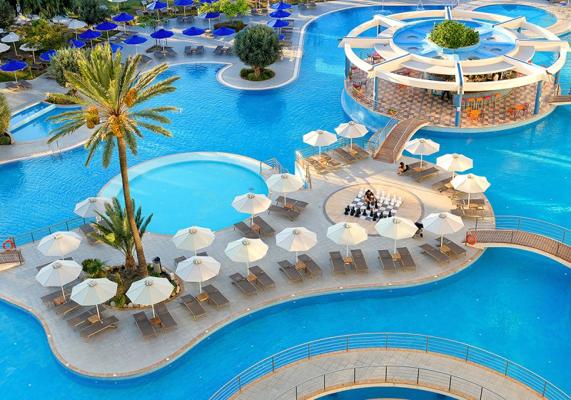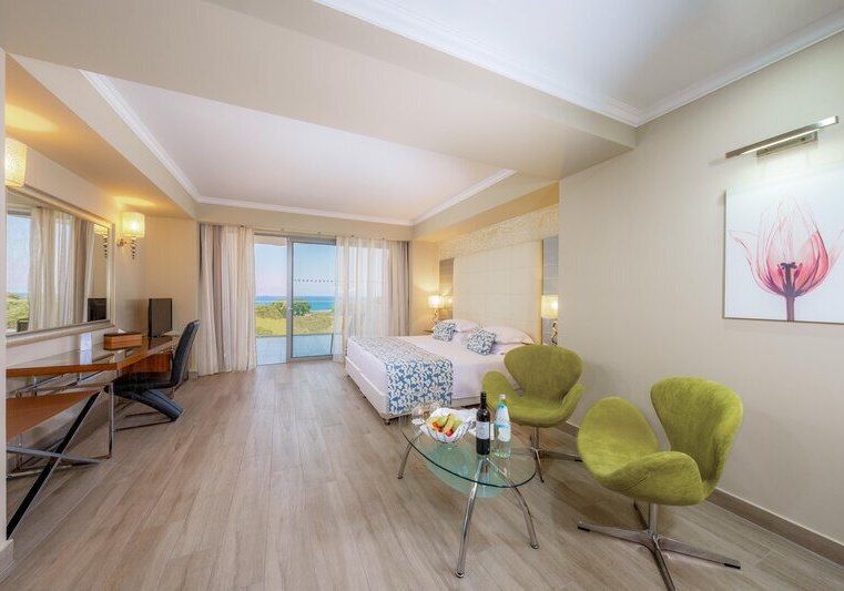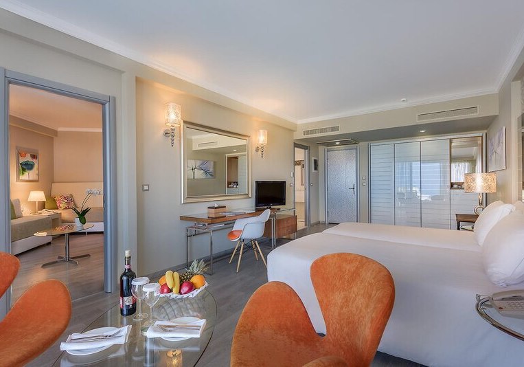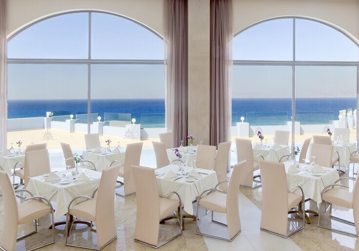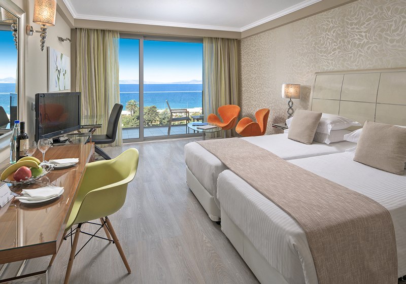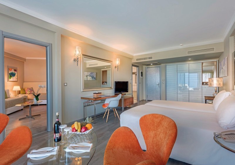 Die Lage bei Ixia bringt Euch schnell zum öffentlichen Kiesstrand, ins Zentrum und nach Rhodos-Stadt. Drinnen erwartet Euch eine umfangreiche Infrastruktur von der 24-Stunden-Rezeption über Geschäfte bis zu Konferenzräumen. Wer Privatsphäre schätzt, wählt Zimmer mit Privatpool; wer Vielfalt liebt, probiert mehrere À-la-carte-Restaurants und das Buffet im Archipelagos.