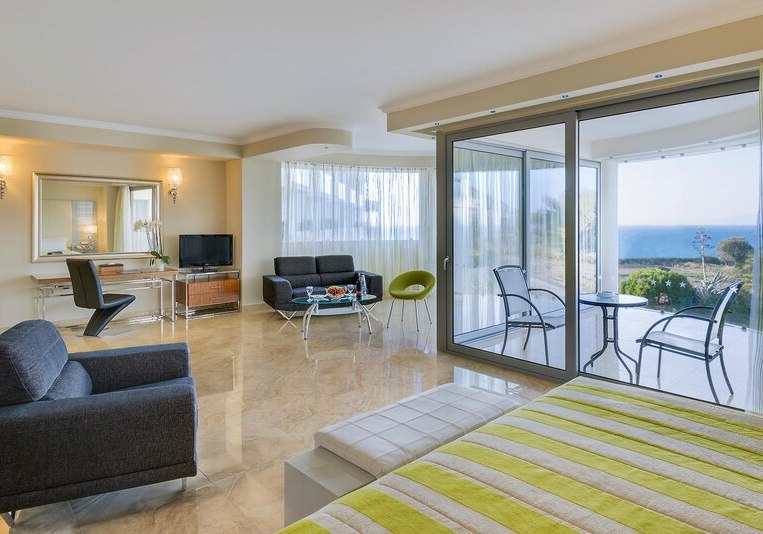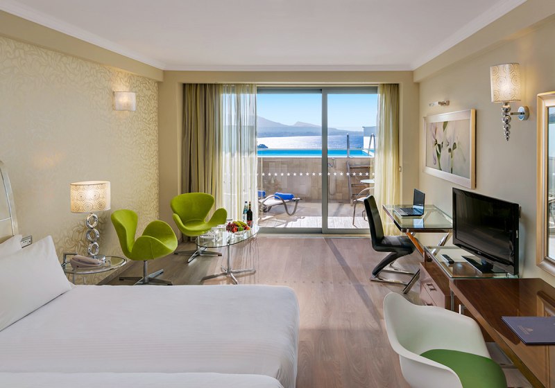 - Meer im Blick: Ausgewählte Zimmer bieten Ausblick auf die Ägäis.
