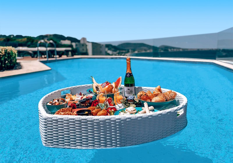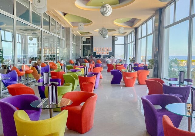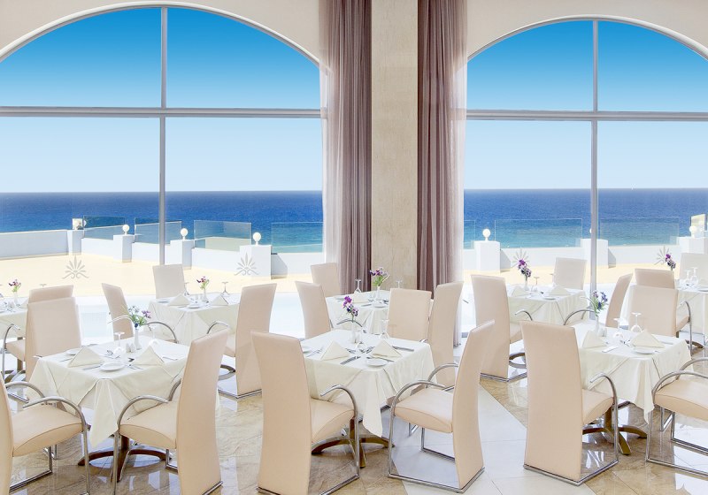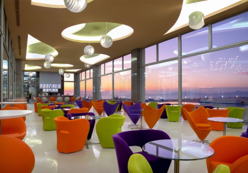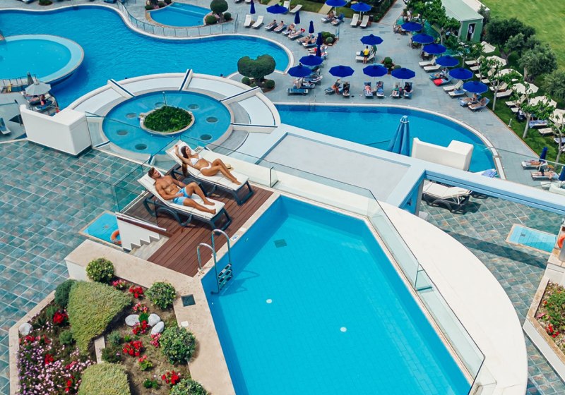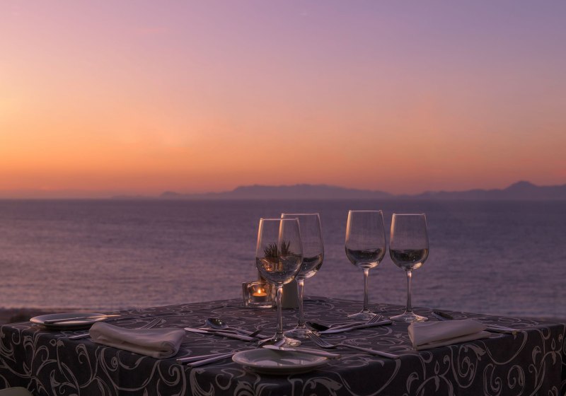 Im Hauptrestaurant Archipelagos bedient Ihr Euch am Buffet. Dazu gesellen sich À-la-carte-Optionen: Elia mit griechischer Küche, Tramonto italienisch, Koi asiatisch und Porfyra mediterran. Für den entspannten Ausklang gibt es die Chromata Lobby Bar und die Rotonda Poolbar sowie eine Gelateria.