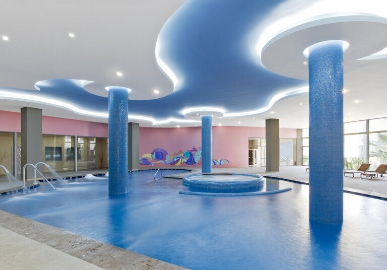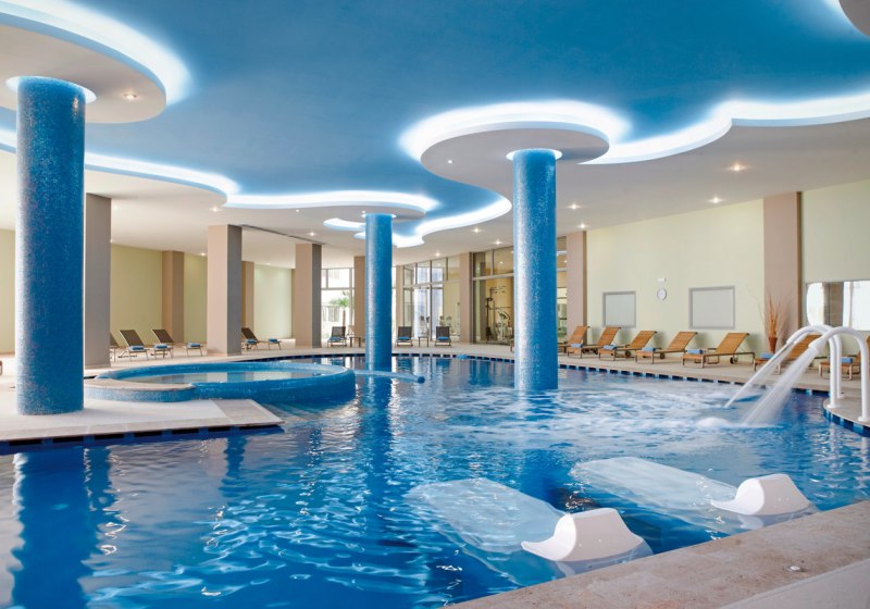 Der Spa-Bereich ist Gästen ab 14 Jahren vorbehalten. Herzstück ist der beheizte Süßwasser-Innenpool mit Wasserstrahl-Massage und Wasserliegen. Ergänzend nutzt Ihr das Whirlpool-Angebot im Spa-Center. Für klassische Anwendungen stehen Massagen, Beautybehandlungen und ein Schönheitssalon zur Wahl.