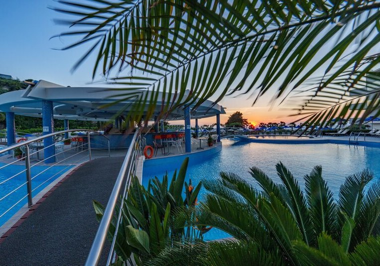 Ein Hallenbad ergänzt die Poolflächen; außerdem findet Ihr Gartenbereiche, Aufzüge, Parkplätze und einen Spielplatz samt Kinderbecken. Praktisch für Familien: Babybetten auf Anfrage. Wichtig zu wissen: Haustiere sind nicht erlaubt.