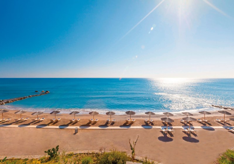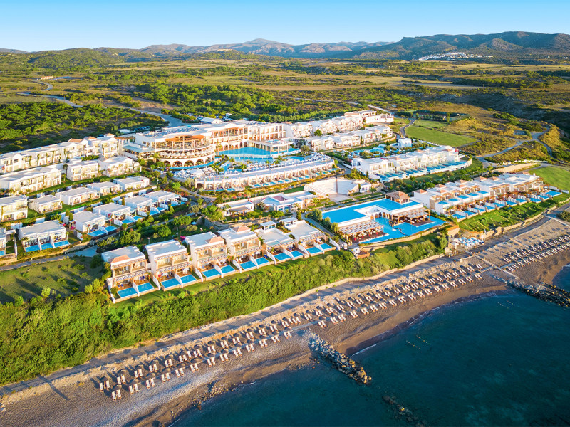 Atrium Prestige verbindet direkte Strandlage bei Lachania, ausgezeichnet mit Blauer Flagge, mit einer klar strukturierten Pool- und Gastronomievielfalt. Ihr wählt zwischen lebendigen Stunden auf den Courts, ruhigen Momenten am Insel-Pool oder fokussierter Erholung im Thalasso-Spa.