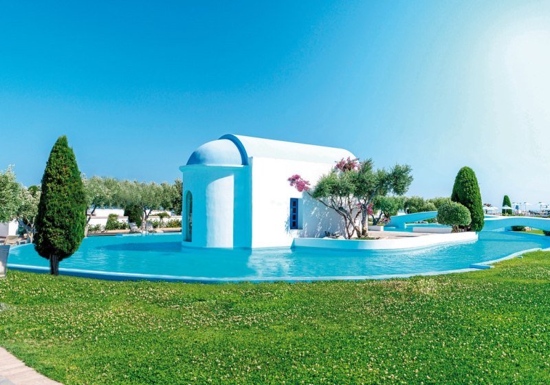 Atrium Prestige empfängt Euch direkt am Sand-/Kiesstrand von Lachania auf Rhodos. Die weitläufigen Bereiche mit großer Poollandschaft, einem ruhigen Pool mit kleiner Insel samt Kapelle und einem beheizten Becken geben Eurem Strandtag Struktur: schwimmen, lesen, an den Strand wechseln, zurück auf die Liegen – ohne Eile, ohne Umwege.