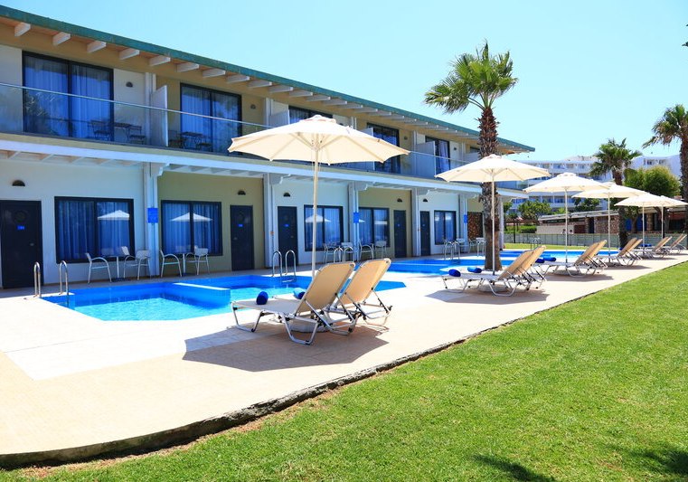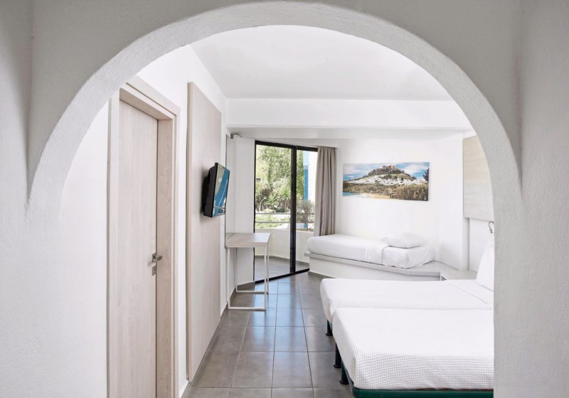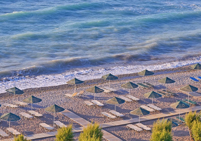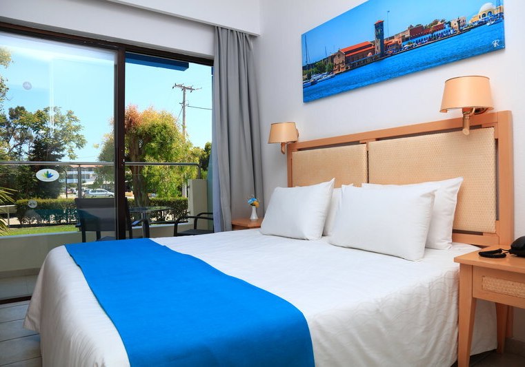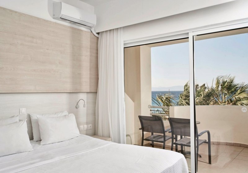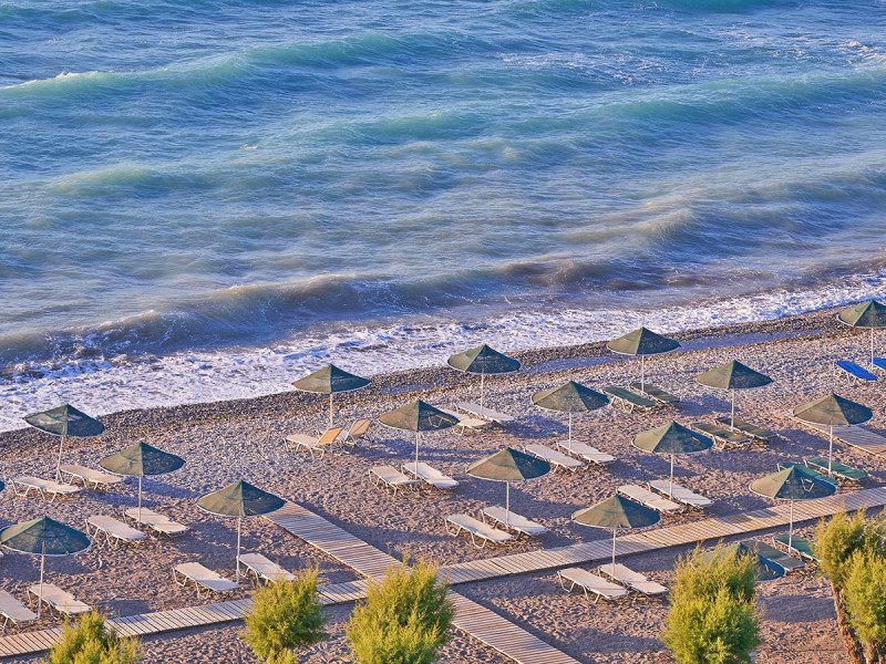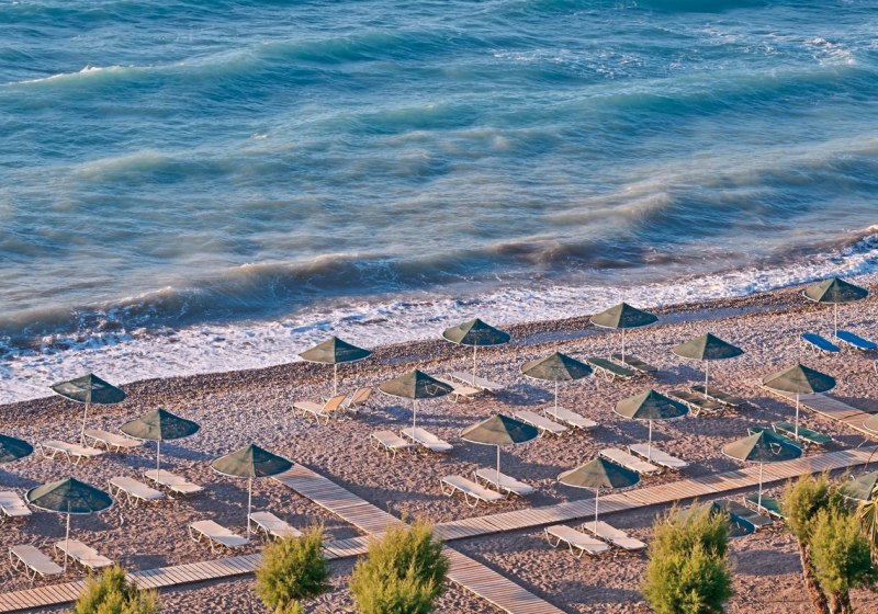 Ihr residiert direkt am Sand-Kieselstrand, der rund 100 Meter entfernt liegt. Das Ortszentrum erreicht Ihr nach etwa drei Kilometern, die Stadt Rhodos nach ungefähr zehn Kilometern. Der Flughafen liegt komfortabel nah bei etwa vier Kilometern, Lindos ist mit rund 50 Kilometern ein lohnendes Ziel für einen Tagesausflug.