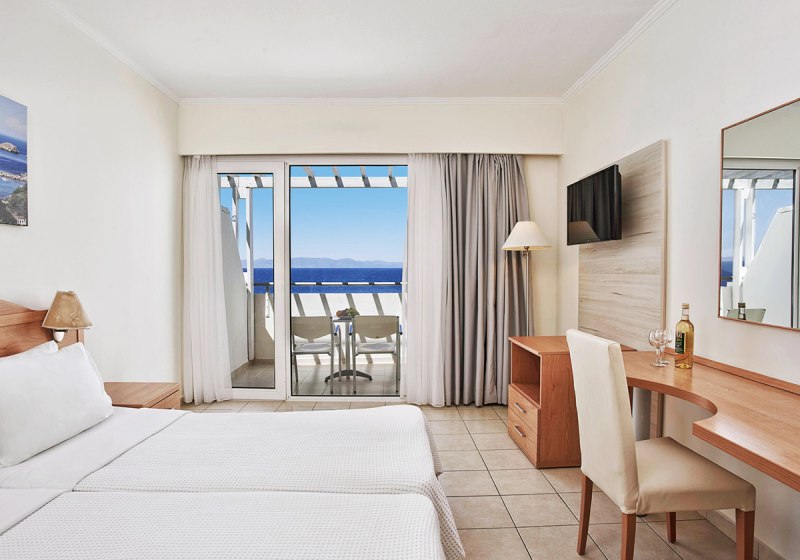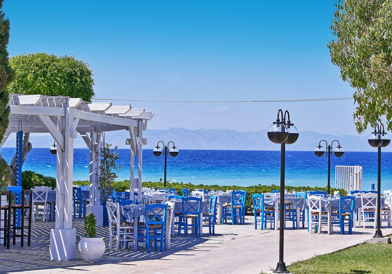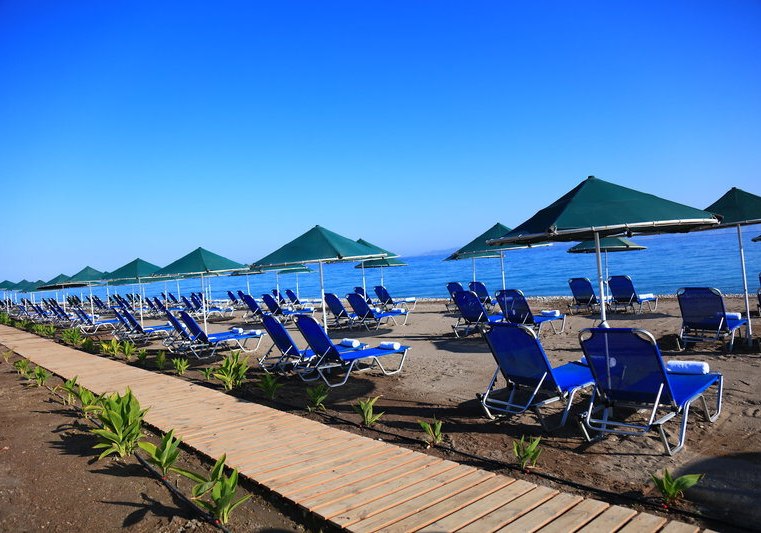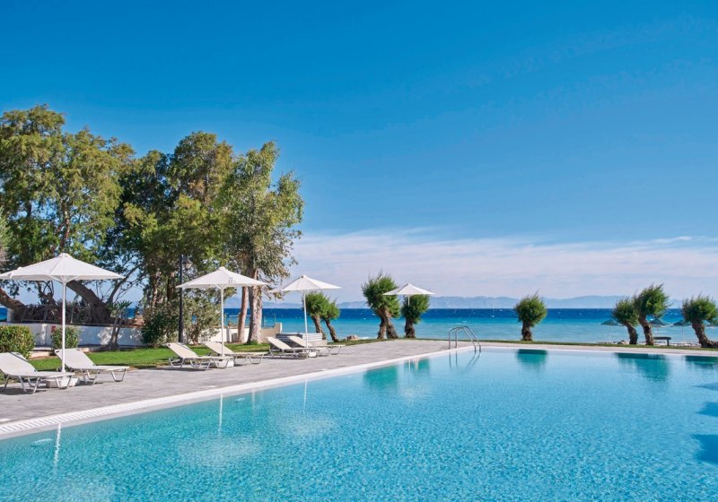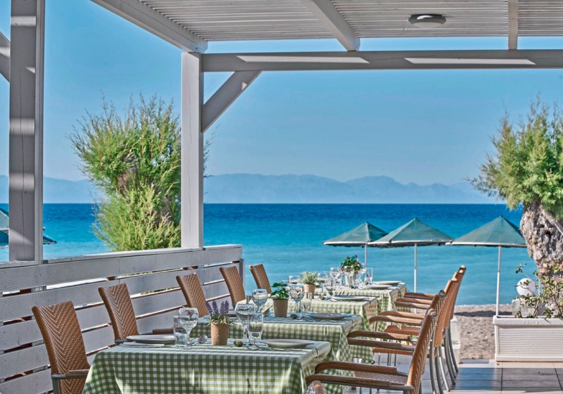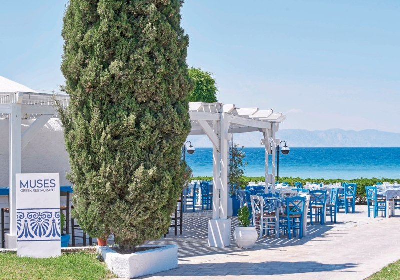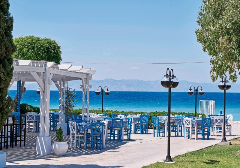 Gastronomisch wählt Ihr zwischen Buffet, À-la-carte-Küchen und flexibler Barvielfalt bis zur Strandbar. Sportlich reicht das Spektrum vom Fitness-Studio bis zum Wassersport. Die Bewertungen bestätigen das stimmige Gesamtpaket mit sehr gutem Service – eine klare Wahl für strukturierte Strandtage auf Rhodos.