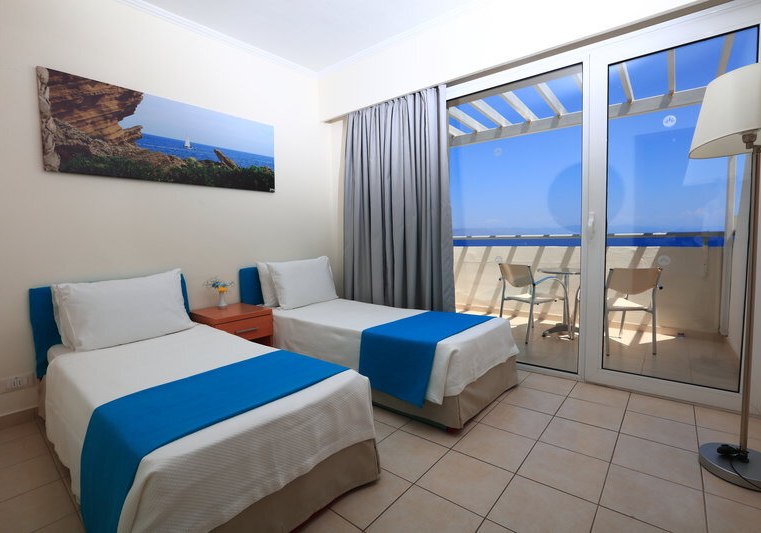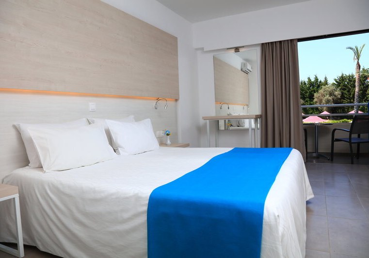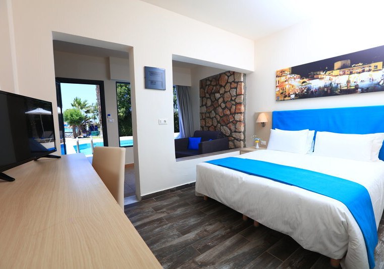 Im Blue Bay Beach Resort wohnt Ihr direkt am Sand-Kieselstrand von Rhodos und taucht in ein entspanntes Resortleben ein. Weitläufige Gärten, Sonnenterrassen und mehrere Außenpools bilden Eure Bühne zwischen Meer und Aquapark. Familien und Strandliebhaber finden reichlich Raum, während ein Adults-only Pool ruhige Bahnen ermöglicht.