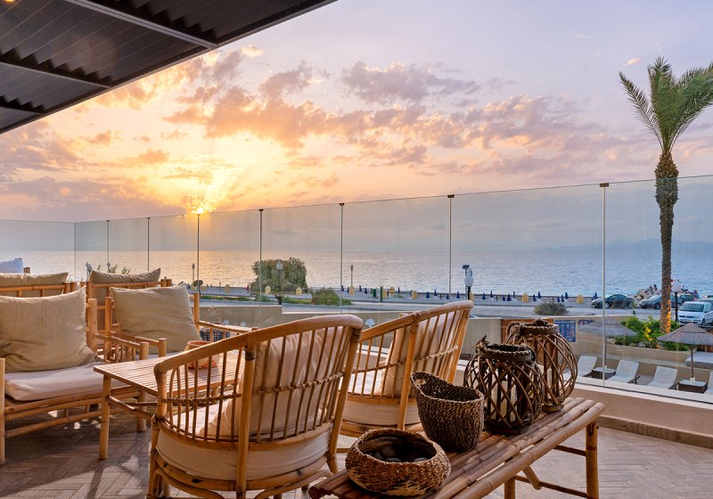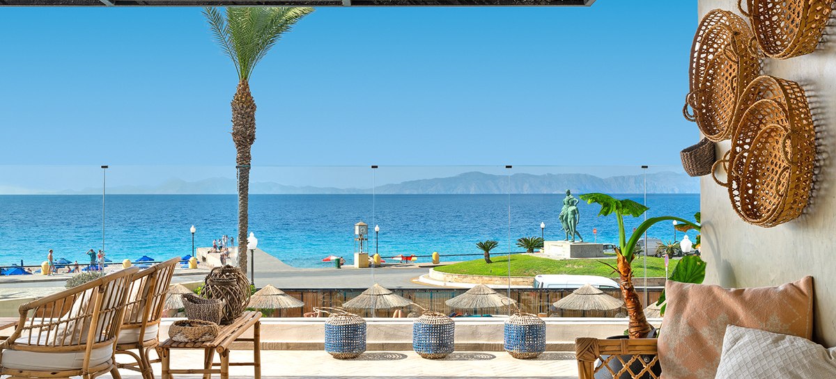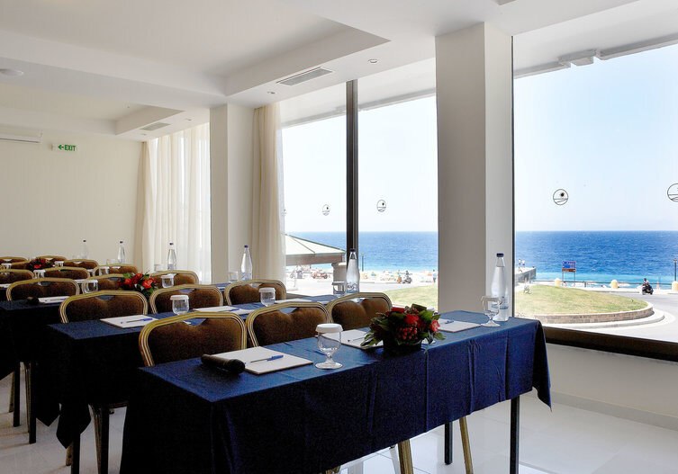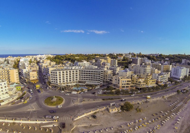 Die Lage ist präzise: Auf Rhodos residiert Ihr wenige Schritte vom Sand-/Kiesstrand, während Rhodos-Stadt in 5–10 Gehminuten erreichbar ist. So wechselt Ihr mühelos zwischen Meeresbrise und urbaner Kulisse. Bars, Diskotheken und das Casino liegen ebenso im nahen Umfeld, was den Abendplan unkompliziert macht. Tagsüber könnt Ihr entlang der Küste spazieren, abends führt der Weg in die Gassen der Stadt.