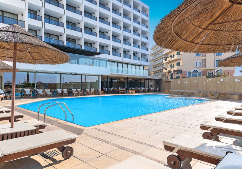 Blue Sky City Beach Hotel verbindet die Nähe zum Meer mit dem Puls einer Stadtadresse. Als Adults-Only-Hotel ab 18 Jahren richtet es sich an Euch, die Ihr Ruhe und Struktur schätzt, aber kurze Wege liebt. Wenige Schritte trennen Euch vom Sand-/Kiesstrand; in 5–10 Gehminuten erreicht Ihr Rhodos-Stadt mit ihren Szene-Bars, Diskotheken und dem Casino. Der Tag lässt sich am Außenpool mit integriertem Jacuzzi beginnen, die Abendstunden klingen auf der Terrasse der Bar aus. WLAN ist im gesamten Haus verfügbar, die Atmosphäre bleibt fokussiert, angenehm zurückhaltend und klar.