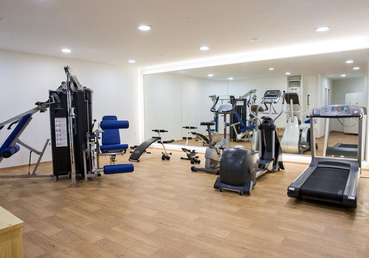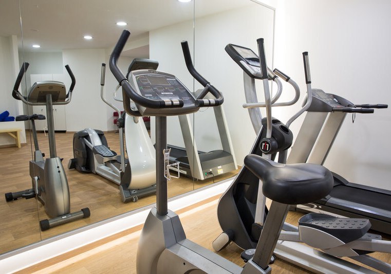 - Kompakt aktiv: Fitnessraum und Aerobic decken die Basics vor Ort ab.
