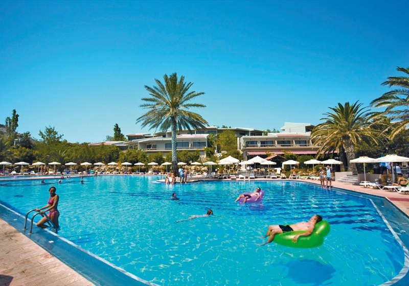 Im Cathrin Hotel erlebt Ihr ein griechisches Resort mit klarer Struktur: 215 Zimmer verteilen sich auf sechs Gebäude, errichtet 1992 und 2016 renoviert. Die Atmosphäre wirkt entspannt, die Wege sind kurz, die Gemeinschaftsbereiche gepflegt. Zwischen Lobby, Garten und Sonnenterrasse findet Ihr Rückzugsorte, während der Außenpool mit separatem Kinderbecken lebendige Treffpunkte setzt.