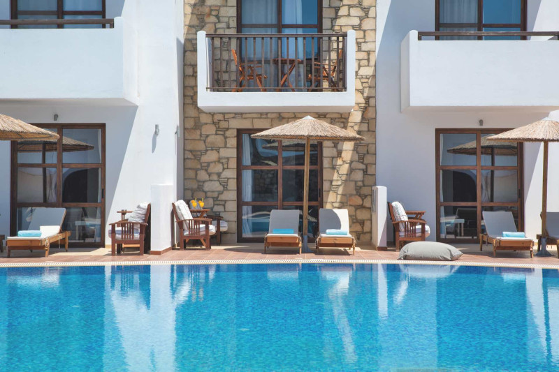 Costa Lindia Beach Resort - The Costa Lindia Blue Star vereint Adults‑only‑Ruhe, direkte Strandnähe via Unterführung und Zugänge zum Nachbar‑Resort. Ihr esst exklusiv im Nireas und erweitert Eure Auswahl um Strandrestaurant, Buffet und drei À‑la‑carte‑Optionen. Spa, beheizbares Hallenbad und Fitnessraum strukturieren den Tag.