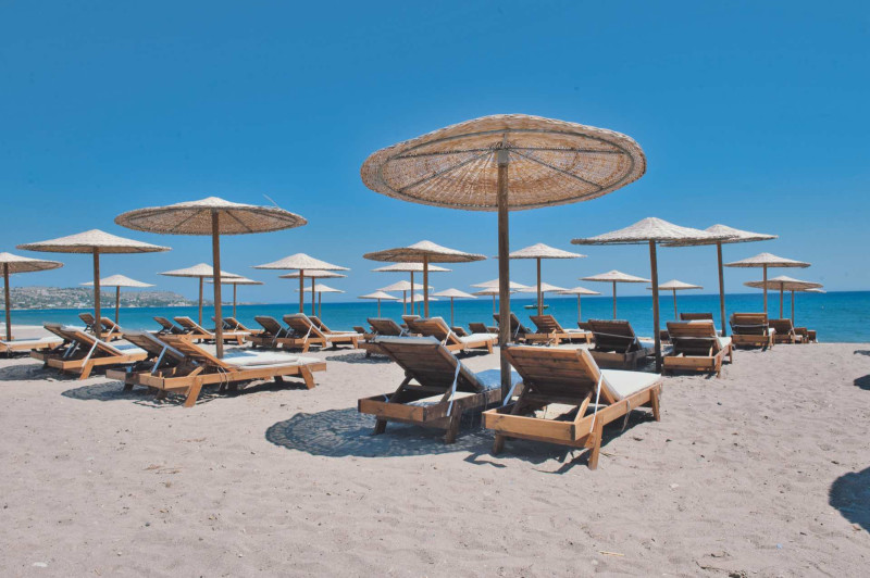 - Strandbereich: Separater Abschnitt mit Liegen und Schirmen direkt zugänglich.