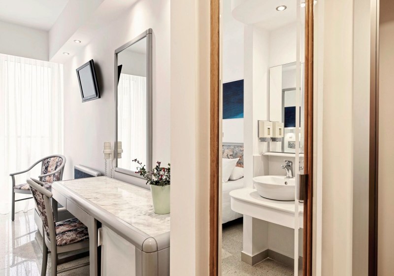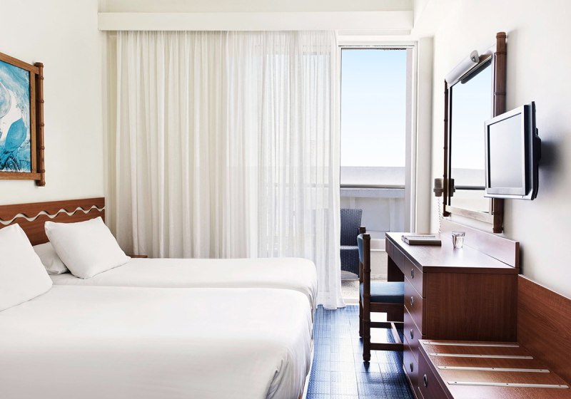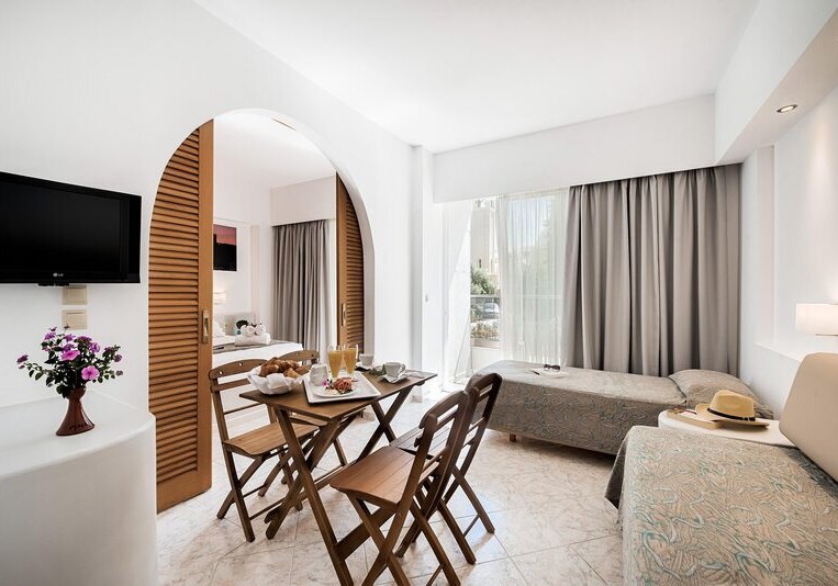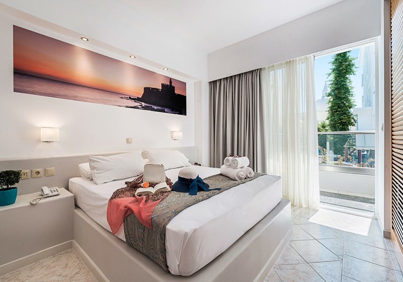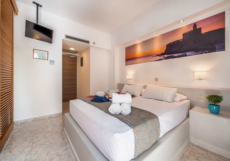 Im Esperia City Hotel wohnt Ihr mitten in Rhodos-Stadt, mit dem Strand in rund 100 Metern Entfernung und der Altstadt in Spazierdistanz. Das Haus mit 171 Zimmern und sechs Etagen wurde 2024 renoviert und wirkt entsprechend klar, aufgeräumt und urban. Der Tag beginnt leicht: erst ein Sprung in den Außenpool, dann Frühstück, bevor Ihr die Stadt erkundet oder an den Strand wechselt.