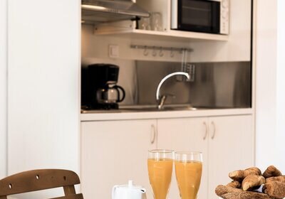 Die Atmosphäre ist angenehm unkompliziert: kurze Wege, eine aufmerksame 24-Stunden-Rezeption, zuverlässiges WLAN in Lobby und Zimmern sowie praktische Services vom Web Check-in bis zum Wäscheservice. Paare, Städtereisende, Kurzentschlossene und Alleinreisende finden hier eine kompakte Basis zwischen Meer und Kultur. Wer autark bleiben möchte, wählt ein Apartment mit Kitchenette und zwei Balkonen. Haustiere sind in begrenztem Rahmen erlaubt.