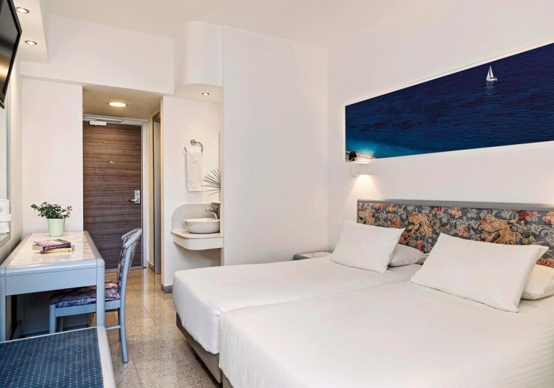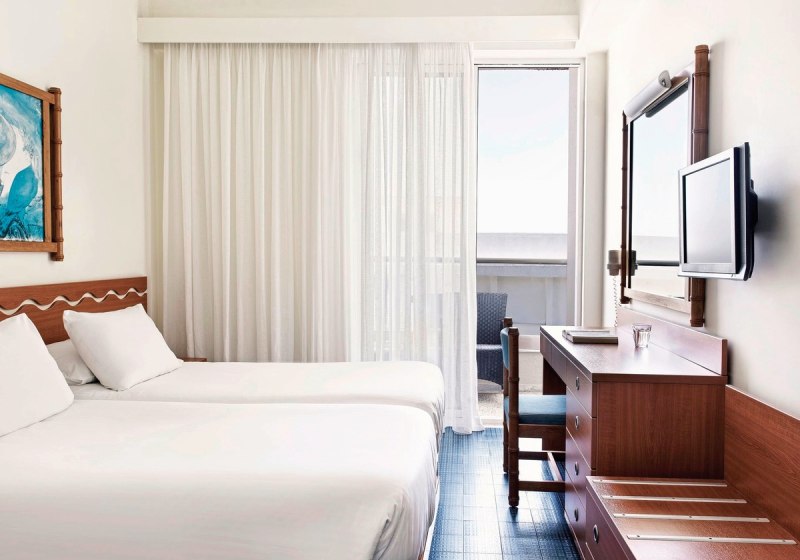 Die Doppelzimmer sind funktional eingerichtet und bieten Klimaanlage, Balkon, Badezimmer mit Dusche/WC, Föhn, Sat-TV, Direktwahltelefon, Mietsafe und Kühlschrank. Kostenloses WLAN hält Euch verlässlich online. Verschiedene Ausblicke – Stadt, Park, Pool oder Straße – geben jedem Zimmer eine eigene Note.