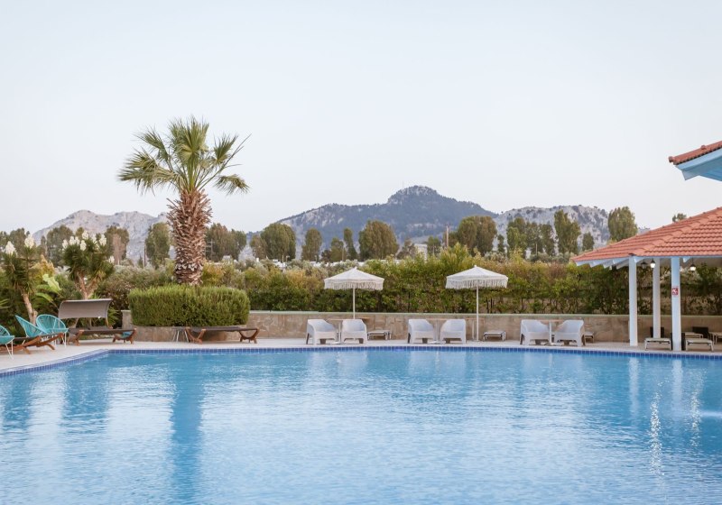 Das Fantasy Resort Hotel liegt in Kolymbia auf Rhodos, ruhig eingebettet zwischen Gartenflächen und Sonnenterrassen. Die Nähe zum Ort macht spontane Abstecher bequem, ob für einen Bummel oder kleine Besorgungen. Ein hoteleigener Shuttle verbindet Euch mit dem Strand, sodass Ihr den Tagesrhythmus flexibel plant – vom Bad im Meer bis zur entspannten Rückfahrt am Nachmittag. Die Lage eignet sich damit gleichermaßen für ruhige Pooltage und kurze Wege zu lokalen Angeboten.