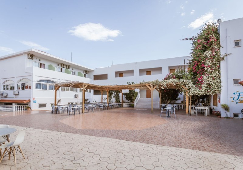 Die Gemeinschaftsbereiche wirken aufgeräumt und zweckmäßig: eine Sitzterrasse für die morgendliche Brise, Poolbars für den Aperitif, dazu ein Restaurant mit Live‑Kochen. WLAN steht in den öffentlichen Bereichen bereit, ebenso eine Internetecke. Praktisch: hoteleigener Shuttle zum Strand, Mietwagen‑ und Fahrradverleih, Parkplatz sowie Minimarkt. Auf Anfrage reist Ihr mit Hunden bis 5 kg an. Highlight: Hoteleigener Shuttle verbindet Anlage und Strand komfortabel.